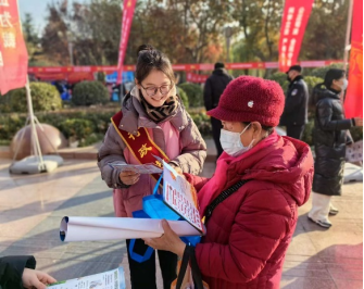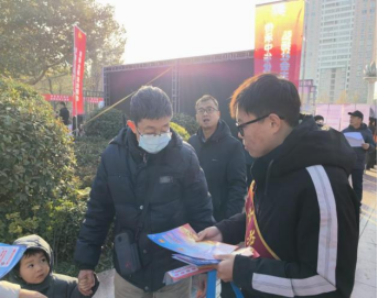 太阳集团tyc234cc教师郝静、郭俊涛带领学生,悬挂宣传横幅、摆放展牌、发放资料,以饱满的热情向群众开展宪法和法律普及教育,号召大家共同学习宪法,提升自觉维护宪法权威和弘扬宪法精神的意识;同时设置咨询台,为群众答疑解惑,引导大家要通过法律途径解决据闻,提高群众自觉学法、守法、用法的法治观念。