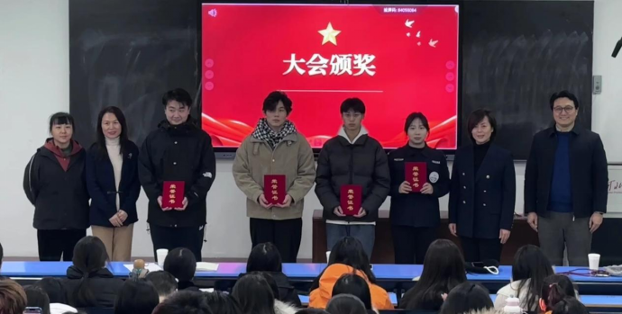 在表彰环节,系领导宣读了表彰通报并为优秀学生颁奖。