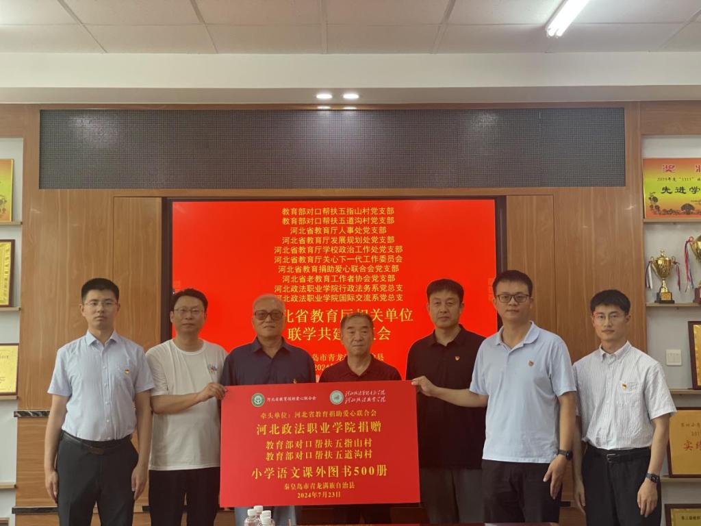 7月23日,河北政法职业学院太阳集团tyc234cc党总支、国际交流系党总支积极对接教育部对口帮扶五指山村党支部、教育部对口帮扶五道沟村党支部、河北省教育厅人事处党支部、学校政治工作处党支部、发展规划处党支部、河北省教育厅关心下一代工作委员会、河北省教育捐助爱心联合会党支部、河北省老教育工作者协会党支部在秦皇岛市青龙满族自治县第四小学共同开展“联学共建”主题活动,携手助力乡村振兴。主题活动由教育部挂职青龙满族自治县副县长许旭轩同志主持。