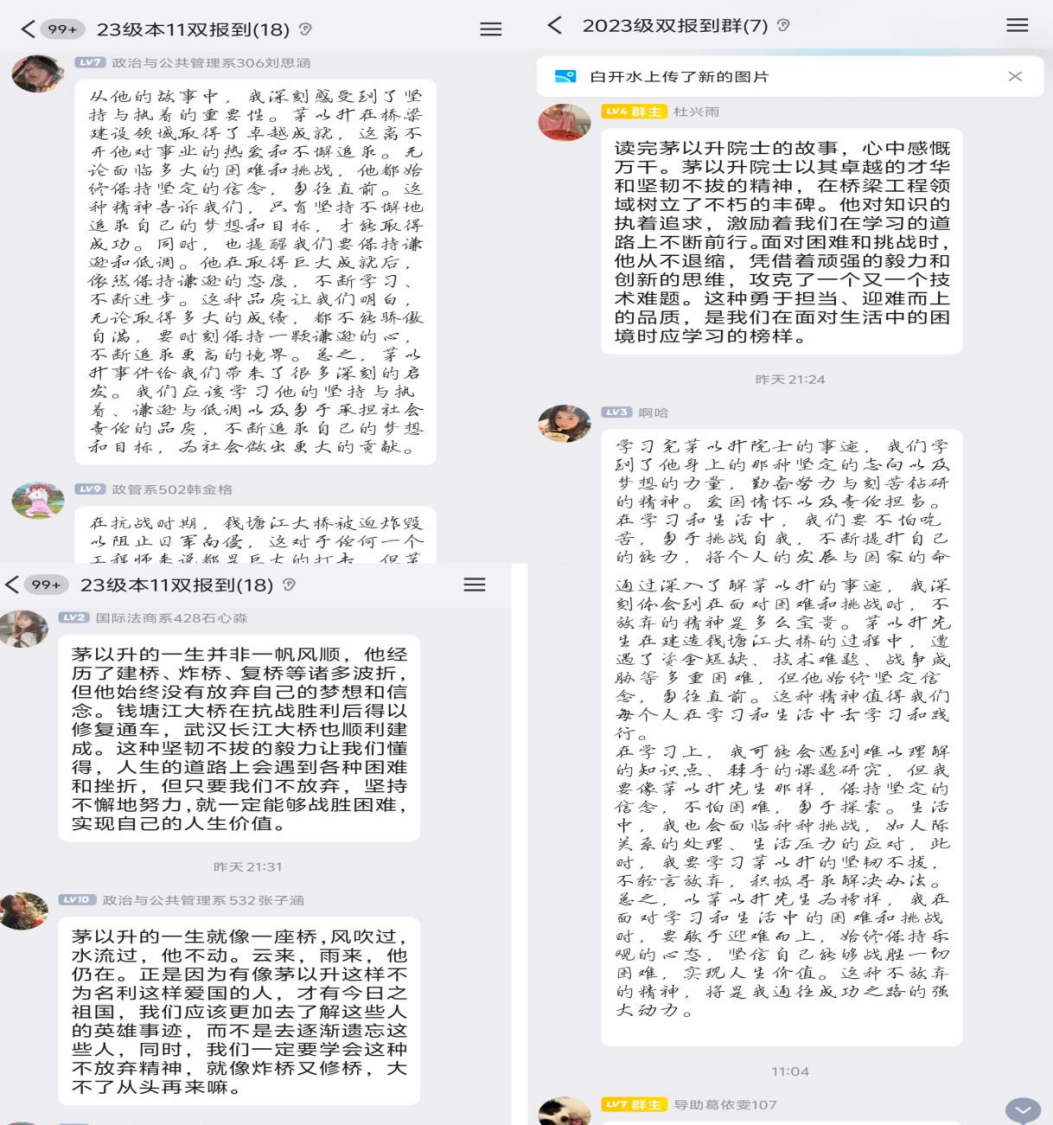 积极分子们纷纷表示,茅以升先生的事迹让他们深受触动。他的爱国情怀、科学精神和奉献精神,为大家树立了光辉的榜样。在学生社区“双报到”的过程中,积极分子们将这种精神转化为实际行动,积极参与学生社区的志愿服务活动,如清洁卫生、安全检查等,为同学们营造一个良好的生活环境。