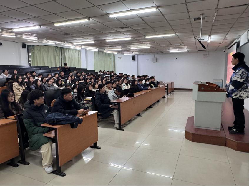 互动环节气氛热烈,同学们积极提问,围绕学习困惑、策略优化及职业规划等话题寻求建议。杨佳诺学长耐心解答,其精准实用的建议令同学们备受鼓舞、信心倍增。