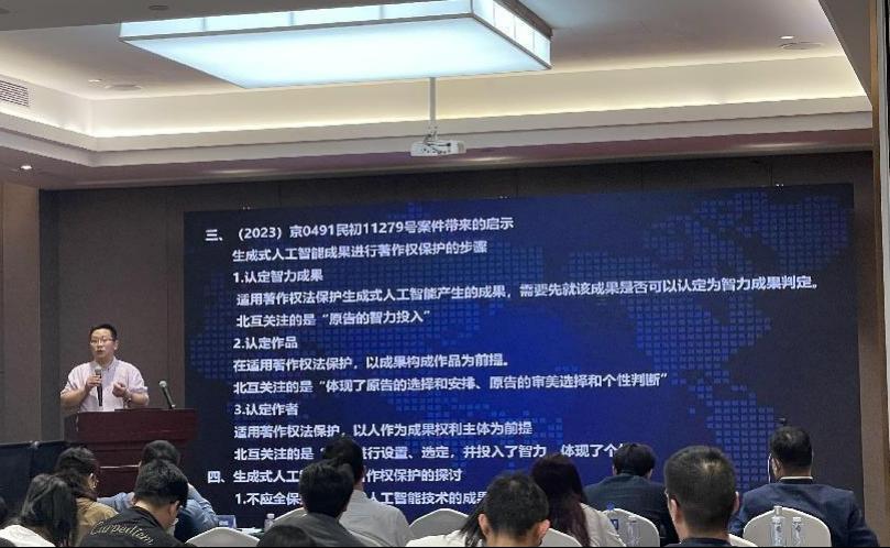 太阳集团tyc234cc教师刘晓龙立足知识产权保护相关内容,结合实践案例,开展主题为《生成式人工智能技术获得成果的著作权保护》的讲座,获得现场嘉宾高度认可。
