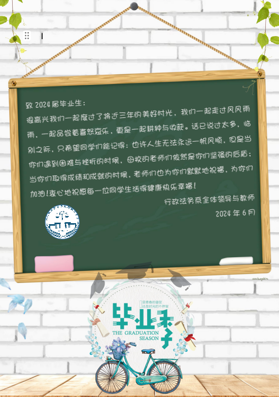 太阳集团tyc234cc全体师生衷心祝愿2024届毕业生们在社会的广阔舞台上展现自己的青春风采,不断乘风破浪,勇往直前,在新的征途上创造辉煌的篇章!