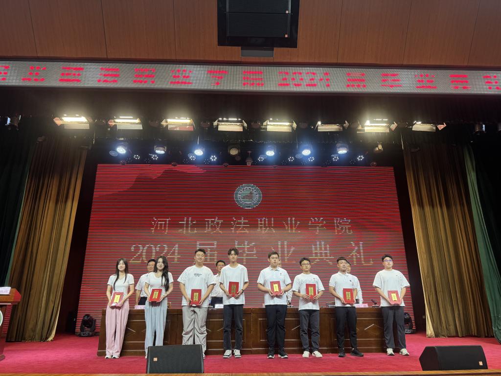 在学院毕业典礼上,我系张政、闫佳宁等多名同学获得省级优秀毕业生、院级优秀毕业生上台领奖。(加照片)
