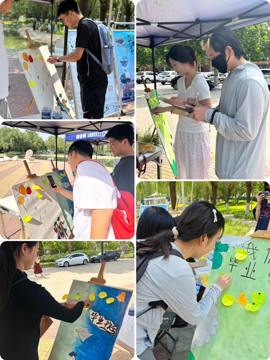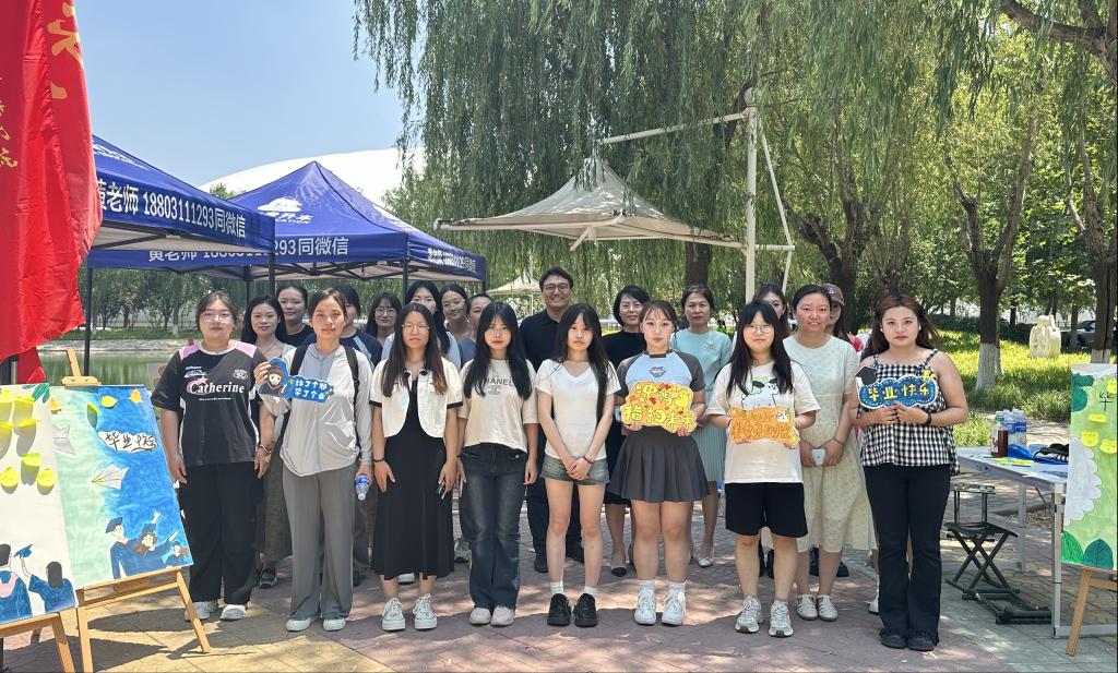在毓秀湖畔,师生们精心绘制了毕业纪念展板,为毕业生们送上祝福。毕业生们也在留言板上表达了对学院、系的美好祝愿,鼓励学弟学妹敢于有梦,勇于追梦,争做新时代的奋进者。老师与同学们依依惜别,合影留念。