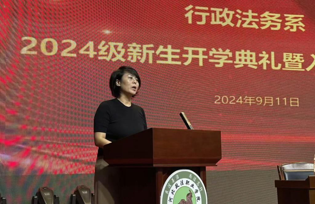 最后,系主任苏丽老师致欢迎词,向全体2024级新同学表示热烈的欢迎和诚挚的祝贺,向为培育新同学倾注无数心血的学生家人致以崇高的敬意。她强调,大学是人生中最宝贵的时光,希望新生们珍惜时光,努力学习,不断提升自己的综合素质,为实现自己的人生价值和国家的繁荣富强贡献力量。她希望同学们能够心怀家国,胸怀天下,勇敢追梦,不负韶华,脚踏实地,努力前行。她号召同学们要积极参加各类技能大赛和社团活动,以昂扬姿态奏响激扬澎湃的青春乐章,以满腔热情续写政法人的精彩华章,为学校升本和高质量发展贡献力量。
