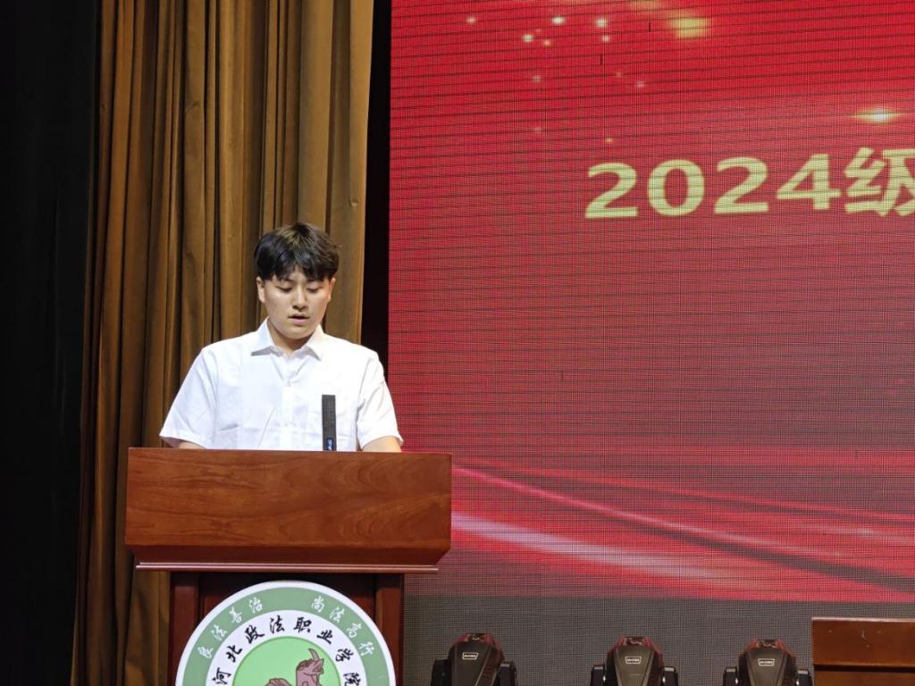 2022级法律事务(行政执法方向)2班王浩然同学代表老生发言,分享自己在校园的成长经历,希望同学们要珍惜时光,充分利用学校的各种资源,努力学习专业知识。鼓励同学们要勇敢地去尝试、去挑战,在挫折中成长,在奋斗中收获。