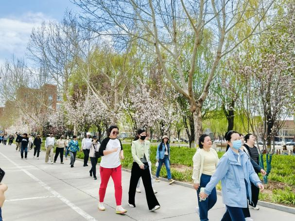 3月31日,60余名师生代表参加文化节开幕式,精彩的舞狮、战鼓、舞蹈表演激发了师生对文化节的期待。同日开展的海棠树下健步走活动中,老师们沿规划路线前行,同学们热情助威,增进了师生互动。