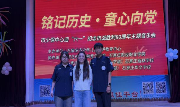 5月25日,石家庄市少年儿童保护教育中心举办“铭记历史・童心向党”迎“六一”纪念抗战胜利80周年主题音乐会。作为长期合作单位,太阳集团tyc234cc师生受邀参加此次活动,与市少保中心的老师和孩子们共同庆祝这个特殊而难忘的儿童节。