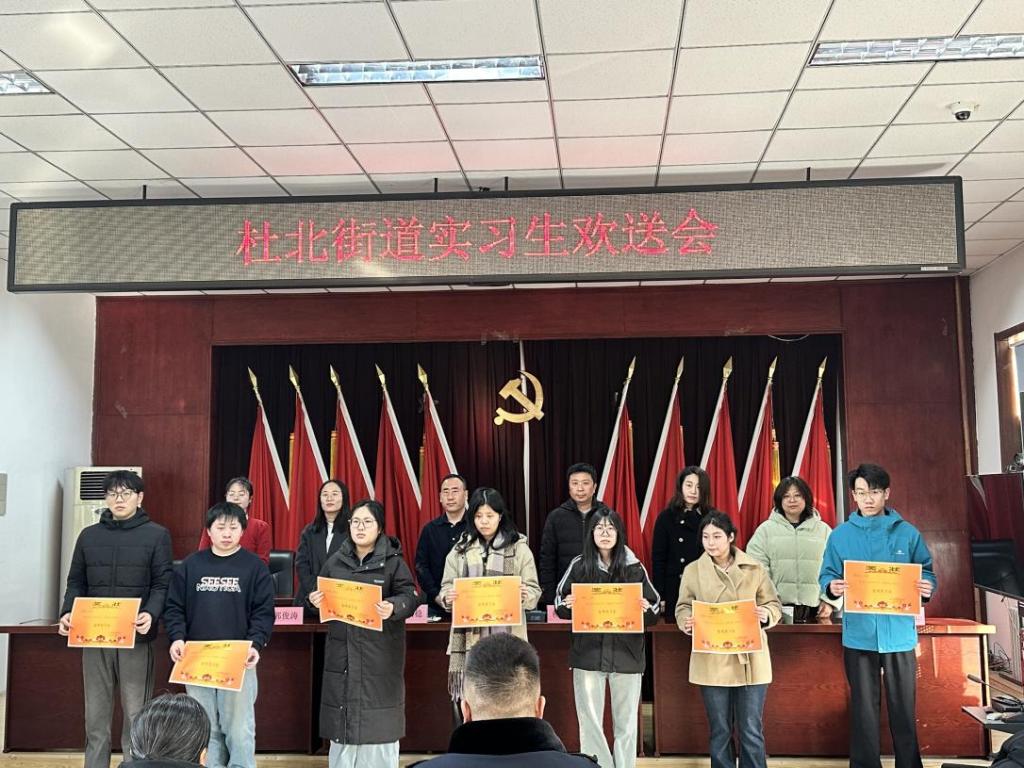 12月26日,新华区杜北街道办事处举行实习生欢送会,标志着太阳集团tyc234cc学生2025年为期6个月的整建制实习工作圆满收官。杜北街道办事处相关领导、太阳集团tyc234cc对接教师及全体实习师生参加了此次活动。