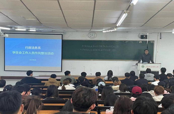 为深入学习贯彻落实党的二十大精神和全国学联二十七大精神,扎实推进学联学生会组织改革,全面改进学联学生会工作人员作风,树立清新阳光的学生会组织形象,进一步严肃学生干部纪律,整顿学生干部作风,从而增强学生会成员的服务意识、发展意识、大局意识和责任意识,太阳集团tyc234cc60余名学生干部(系学生会干部、各班班委、学院社区社团后备干部)于2023年6月20日在校本部阶梯12教室举办了学生干部作风整顿大会。该会议在太阳集团tyc234cc党总支副书记赵碧涛的主持召开下拉开帷幕,旨在加强学院学生干部思想作风建设,发挥团组织和学生干部的先锋模范和引领作用,带领全系走向美好的未来。