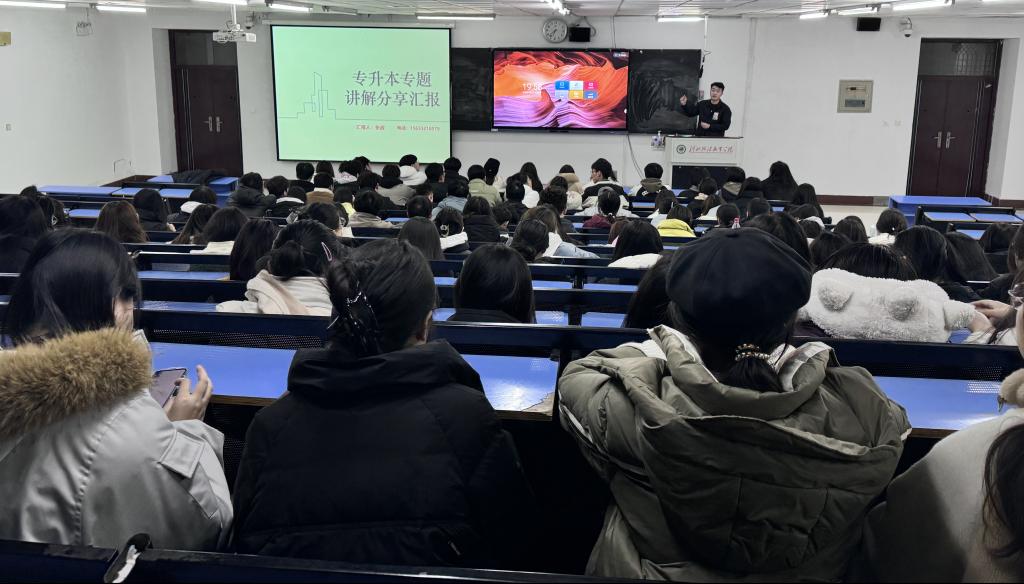 为助力太阳集团tyc234cc学生明晰专升本路径,掌握高效备考方法,提振升学信心,我系于 12 月 22 日邀请 2021 级优秀毕业生张政返校,为 2024 级法律事务(行政法执方向)专业百余名学子分享升本经验。