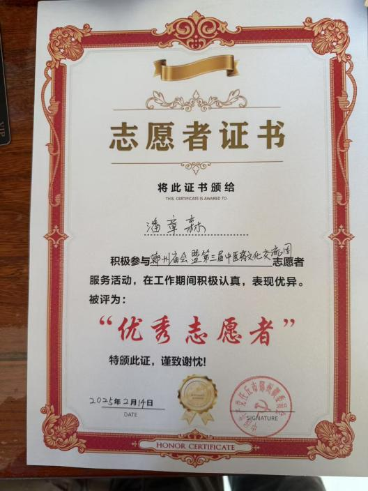 潘章森同学参与了任丘市鄚州镇组织的鄚州庙会暨第三届中医药文化交流志愿活动。活动中,他辅助专业医生介绍中医药文化知识,发放中医药文化宣传手册。此次志愿活动不仅使他深刻体会到奉献的快乐,更坚定了他们继续参与志愿服务的决心。