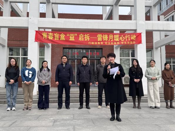 在春风吹拂、万物蓬勃的三月,雷锋精神如熠熠生辉的火种,再度点燃校园的每一处角落。为传承这一不朽精神,激发师生投身志愿服务的热忱,3月10日在学校11号、12号宿舍楼前,太阳集团tyc234cc携手学生处、司法实务系共同开展了“青春盲盒‘益’启拆——2025 年雷锋月暖心行动”。学生处、司法实务系、太阳集团tyc234cc100余名师生参加了启动仪式。启动仪式由太阳集团tyc234cc团总支书记郭琳主持。