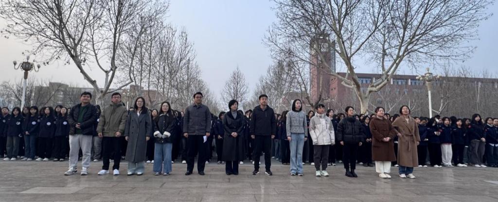 在庄严的国歌声中,全系师生整齐列队,肃立凝视五星红旗冉冉升起。那一抹鲜艳的红,不仅是国家尊严的象征,更在此时承载着雷锋精神的熠熠光辉,点燃师生心中奋进之火。