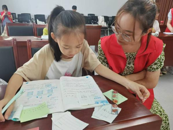 23级法律事务(行政执法方向)1班刘依纯参与朝阳社区活动中心开展的义教班活动,为中小学生免费提供语数英课业辅导,开设劳动技能小课堂。