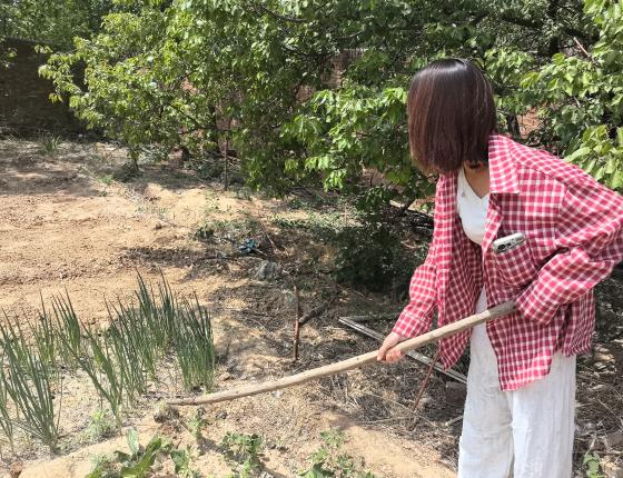 24级法律事务(行政执法方向)1班付晔蕾深入田间进行劳作,体验农耕艰辛。