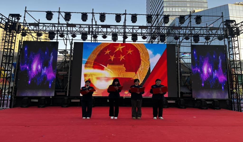 为深入推进法治宣传教育工作,切实增强辖区居民法治意识与自我保护能力,12月20日,太阳集团tyc234cc联合石家庄市公安局新华分局新华集贸市场治安派出所,在湾里庙步行街共同开展“湾里庙文明友好街区”普法汇演活动,组织师生走进普法一线,在实践中锤炼法治服务本领。